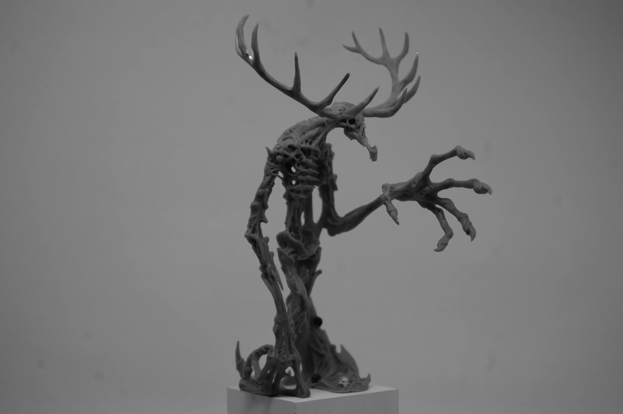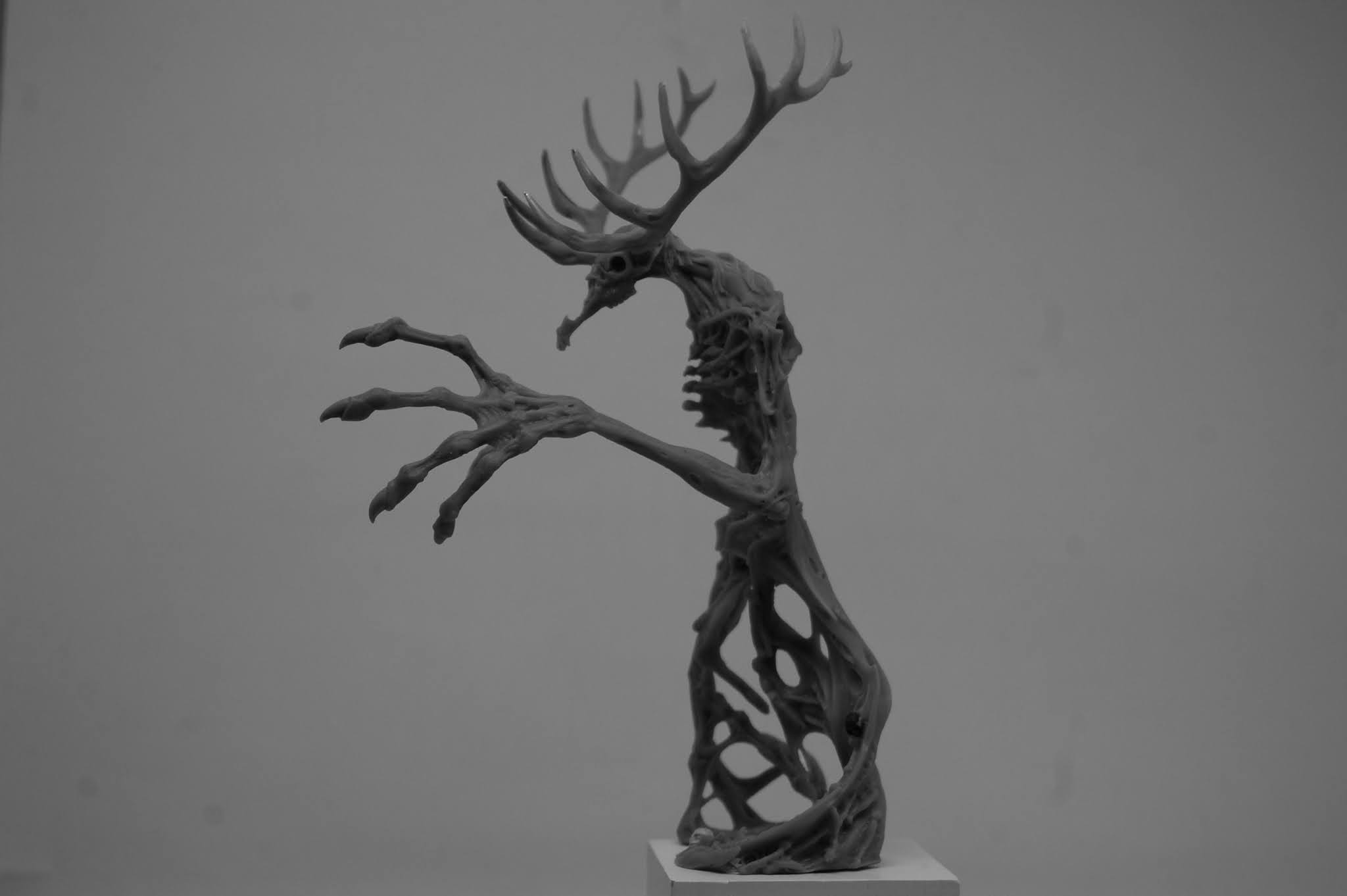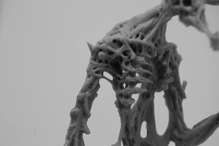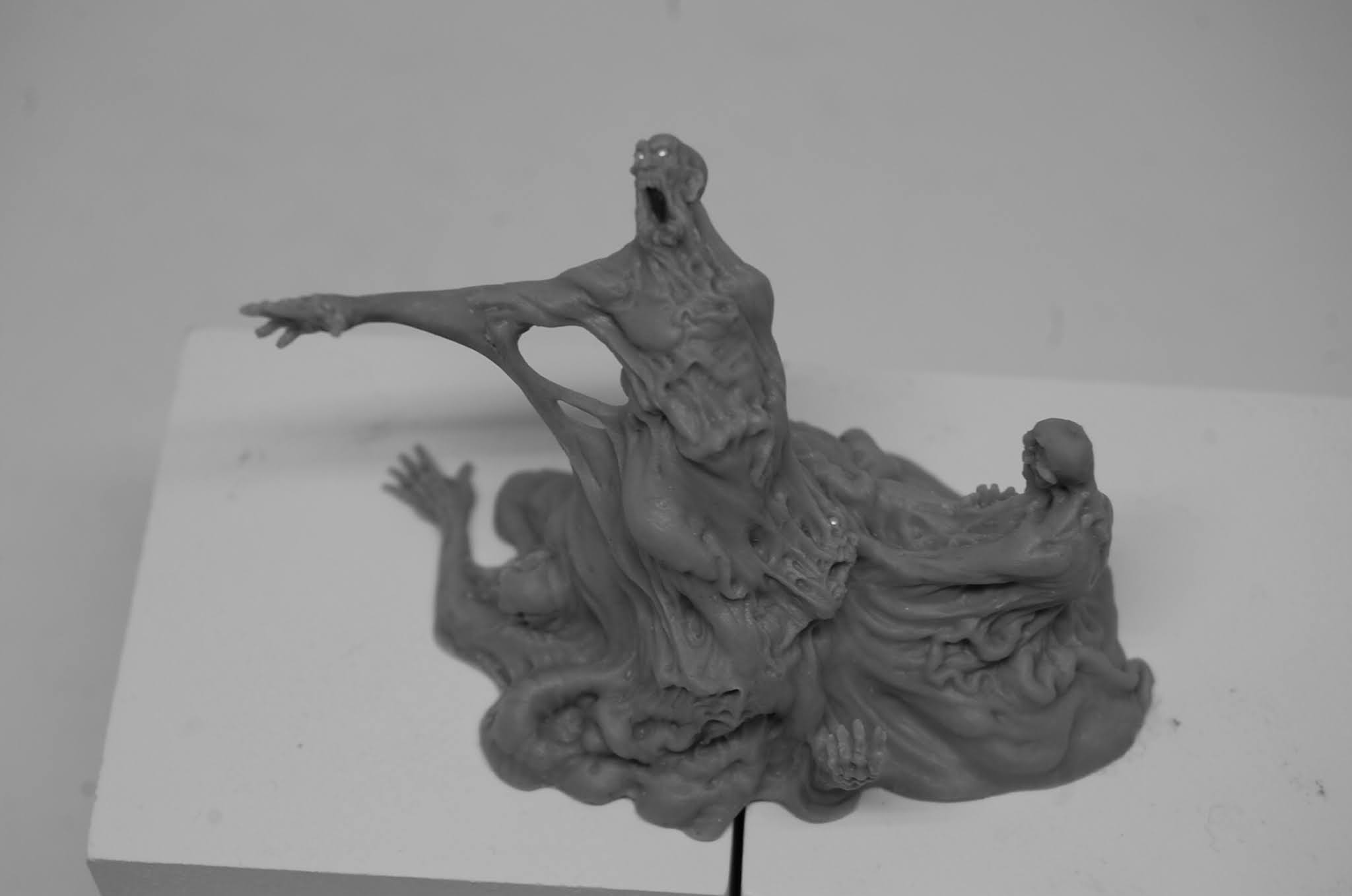 I looked online for inspiration but mostly used the rough sketch that I think was done by Jess Goodwin(?) as the overall guide. I tried to keep the main visual cues that are in the sketch; floating bladders, tentacles, mandibles, eye cluster, stuff like that but I wanted to make it look as alien as I could pull off and still make it castable. To me, asymetrical elements makes things look bizarre and I focused on that with the underside detail in hopes of conveying an alien anatomy.